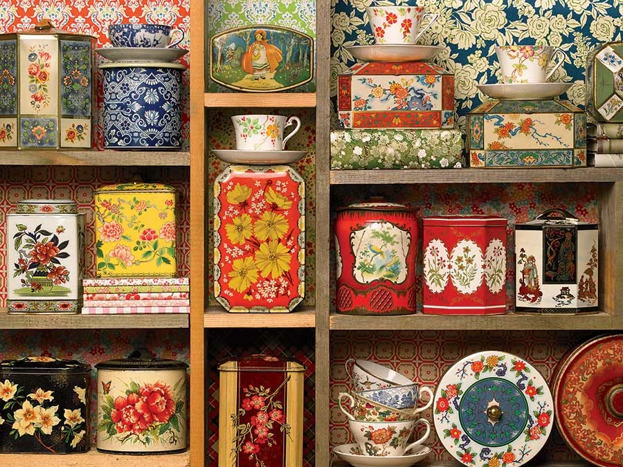 Vintage tins decorated in floral prints make wonderful Tea Caddies. This Truly Original Photo (T.O.P.) puzzle was created in-house by the Cobble Hill Creations design team, including building the custom frame for these lovely tea tins collected across North America. Cobble Hill’s Easy Handling 275 piece puzzles have extra large random cut pieces to make gripping the pieces easier and the reference poster will help you find your way through the adventure.