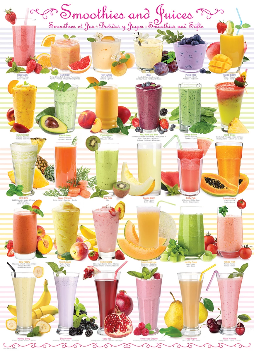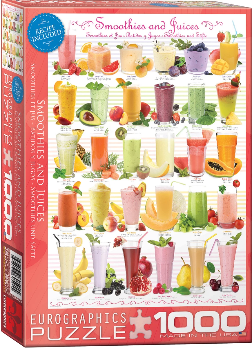 Smoothies & Juices is a 1000 piece jigsaw puzzle from EuroGraphics. Puzzle measures 19.25″ x 26.625″ when complete.