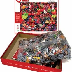 Berries have been valuable as a food source for humans since before the start of agriculture and remain among the primary food sources of other primates. Common examples are strawberries, raspberries, blueberries, blackberries, red currants, white currants and black currants. Sweet and juicy, berries make a wonderful smoothy or are great just to nibble on. Look for your favorites in this 24″x 30″ 1000 piece puzzle.