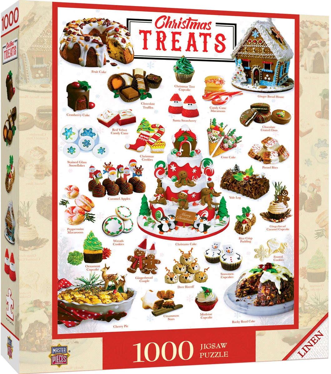 These delicious holiday treats are all ready for a Christmas party! A gingerbread house, stained glass snowflake cookies, and adorable snowman cupcakes are among the sugary snacks featured in this fun puzzle. This colorful collection of decorated desserts is perfect for the puzzler with a sweet tooth!