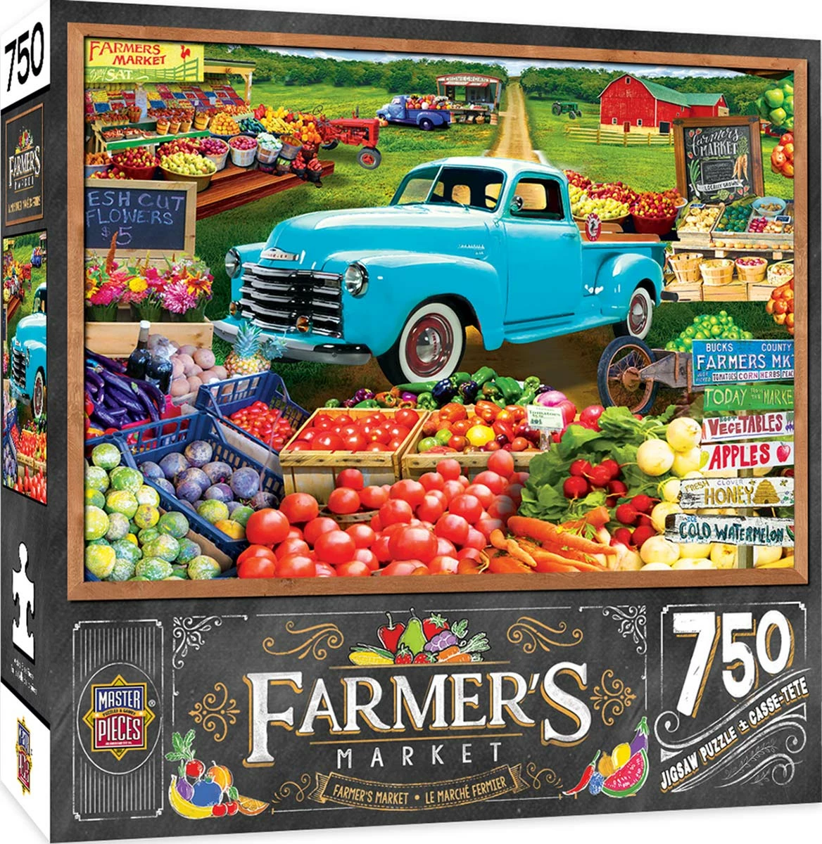 Locally Grown displays an amazing illustration of a farmer’s market showcasing a vintage Chevrolet truck. The 750 piece MasterPieces jigsaw puzzle features everything you would see at a market with fresh fruit, vegetables and flowers bringing as it brings vivid colors to the image. This 10+ puzzle has a completed dimension of 24″ x 18″ making it an exciting and challenging image to assemble.