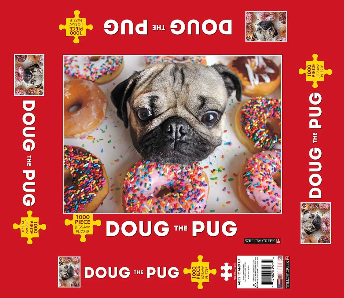 Doug the Pug, aka the “King of Pop Culture,” loves the camera and this puzzle of Doug with his favorite pastries proves the camera loves him as well. Proudly made in the U.S.A., the 1000 precision cut, fully-interlocking pieces are poly-bagged for protection inside an attractive 12″ x 10β box. Β Completed puzzle measures 26.625″ x 19.25β.