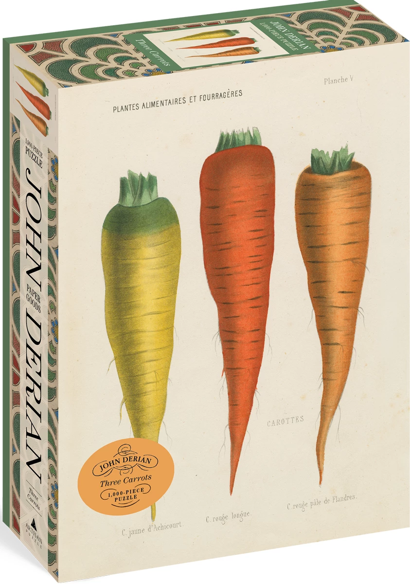 Behold the perfect carrot from John Derian, the artist and designer whose work with printed images from the past transports the viewer to another world. Based on a chromolithographic print from a nineteenth-century botanical guide, Three Carrots features a trio of plump French carrots that evoke a moment food lovers dream about, when whatβs for dinner was plucked from the garden only a brief time earlier.